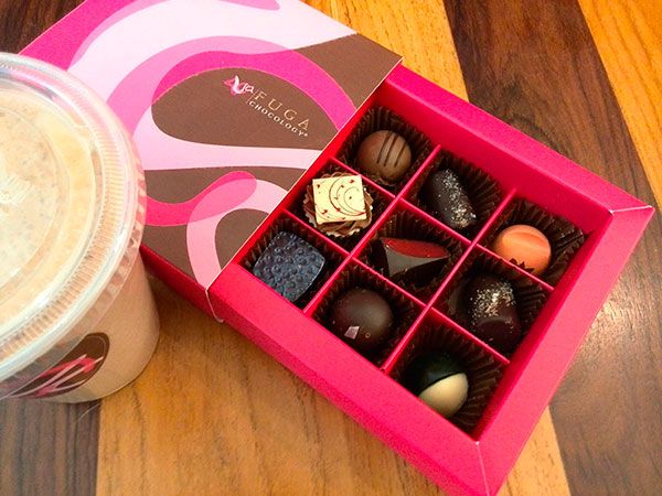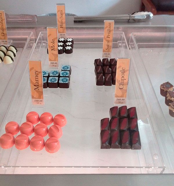 Los bombones son de entrada su principal atractivo, se exhiben en una vitrina iluminada al estilo de una joyería, son una explosión de sabor envuelto en un chocolate crocante que invade tu paladar; hay de gustos a gustos pero no hay uno que te decepcione ya que están desde los clásicos como el de café, menta, coco y pistache hasta los que son para paladares aventureros como los de jengibre, lavanda, azafrán y queso de cabra con guayaba.